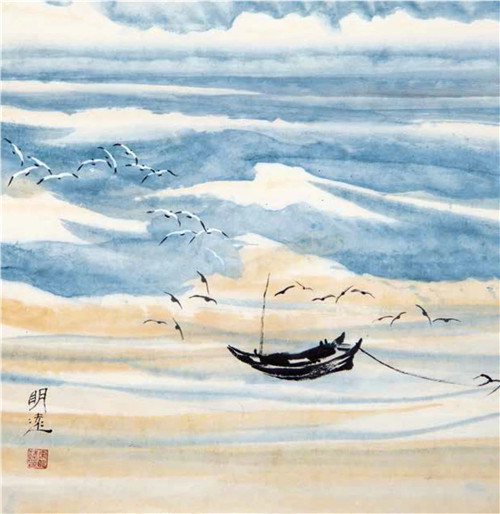 我国是海洋大国,在建设海洋强国的新时代背景下,一些有志于从事中国海洋画创作的艺术家们,以博大的胸怀和宽广的视野,自觉将中国画的水从溪、泉、湖泊延伸至海洋,将水从衬托山、石、树木的附属地位转为以海水为主体地位,充分和深入地描绘海水的波、涛、浪、涌等至刚至柔的万千动态,展现了中国画“靠水不靠山”的新面貌。